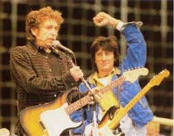 Bob Dylan and Ron Wood play guitar during the 1996 Prince's Trust benefit in Hyde Park, London.